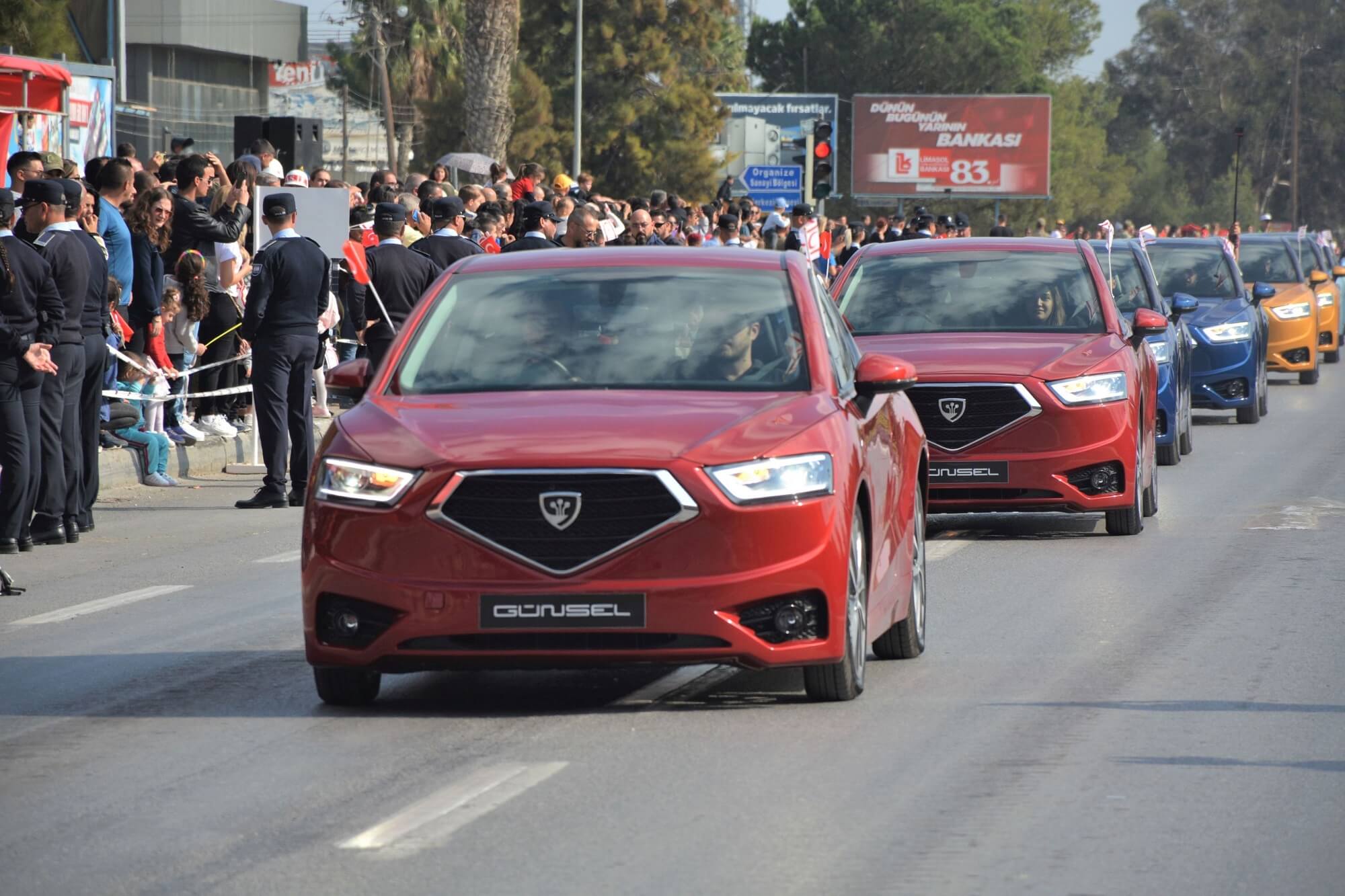 The 39th anniversary of the foundation of the Turkish Republic of Northern Cyprus was celebrated in the ceremony area at Dr. Fazıl Küçük Boulevard. In the celebration and official parade held with intense participation, GÜNSEL, the country’s national and domestic car, took part in the Republic cortege, which greeted the state protocol and the public, with 13 prototypes of its first model B9.