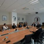 Rector of Near East University Prof. Dr. Tamer Şanlıdağ welcome former Ambassador of the Republic of Turkey to Brussels, Dr. Hasan Ulusoy. Near East Institute Director Assoc. Prof. Dr. Mustafa Çıraklı, Head of International Relations Department Assoc. Prof. Dr. Sait Akşit and faculty members accompanied Rector Şanlıdağ at the meeting through which information was given about the university and projects conducted.