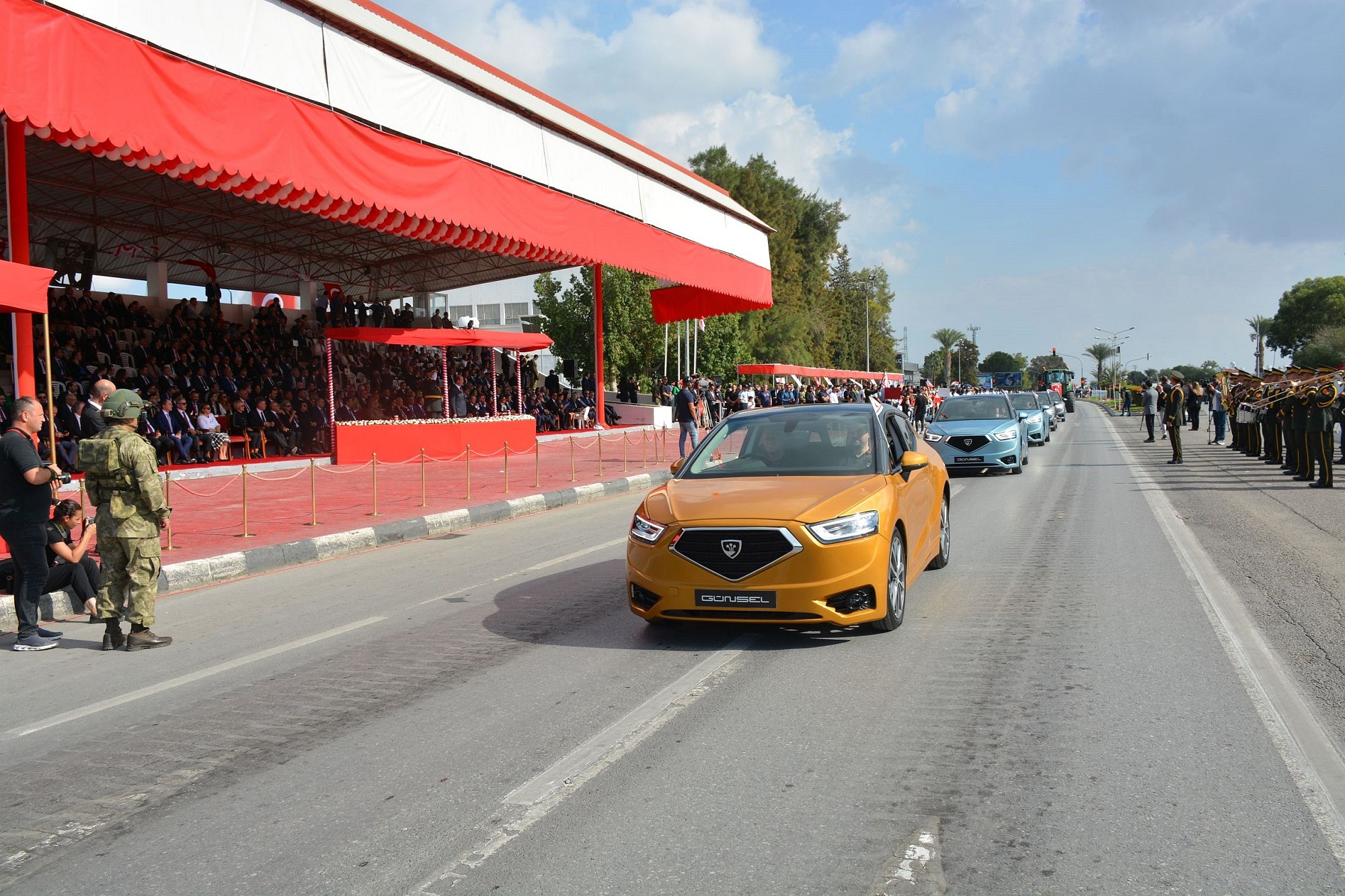 KKTC’nin milli ve yerli otomobili GÜNSEL de ilk modeli B9’un 13 prototipi ile Cumhuriyet kortejinde yer alarak halkı selamladı. “Kuzey Kıbrıs Türk Cumhuriyeti’nin bilgi, birikim ve bilimsel üretiminin ürünü olan ülkemizin yerli otomobili” anonsu ile tören alanına giren GÜNSEL, yoğun bir ilgi ile karşılandı. Cumhuriyete yakışır bir şekilde Kuzey Kıbrıs Türk Cumhuriyeti halkının girişimciliğini ve yaratıcılığını temsil etti. Tören, KKTC’nin kuruluşunun 40’ıncı yıl dönümü onuruna gerçekleştirilen resmi geçit töreni ile tamamlandı.